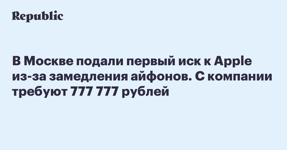 В Москве подали первый иск к Apple из-за замедления айфонов. С компании требуют 777 777 рублей