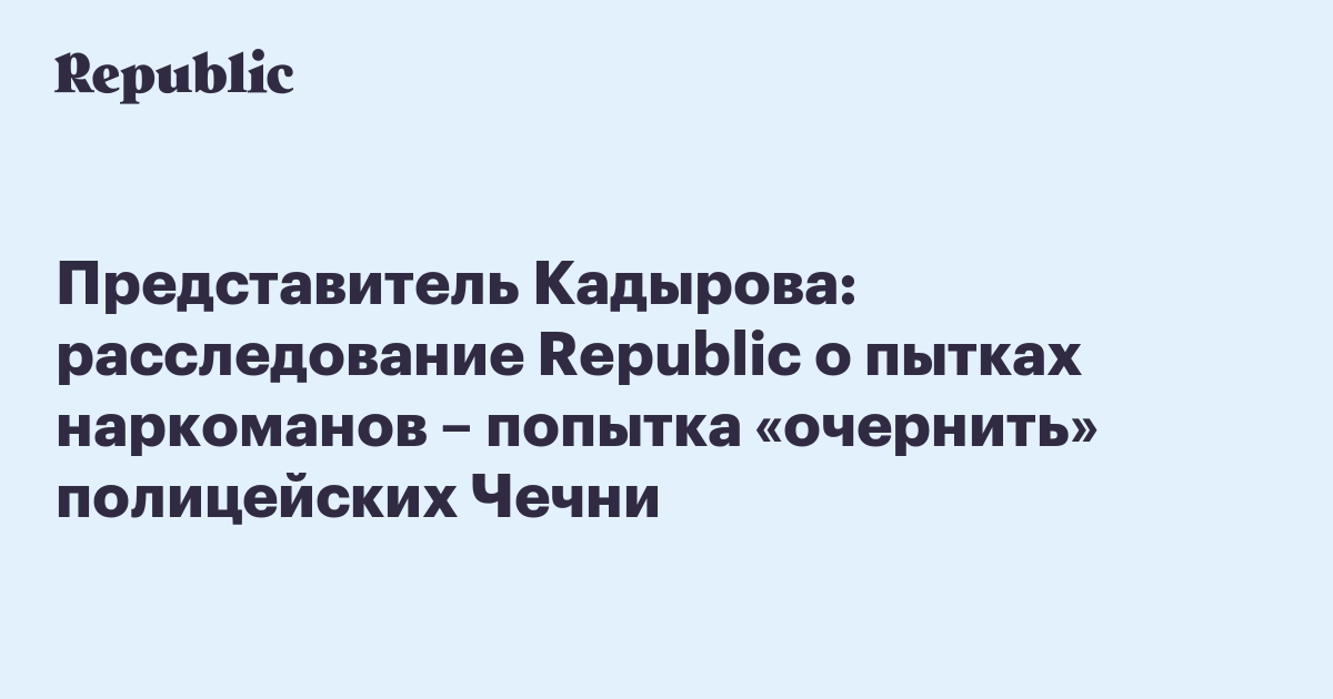 Расследование Republic о пытках в Чечне подозреваемых в употреблении наркотиков не соответствуют действительности и представляют собой попытку «очернить в глазах общественности сотрудников органов внутренних дел Чечни». Об этом РБК заявил пресс-секретарь главы республики Рамзана Кадырова Альви Каримов.