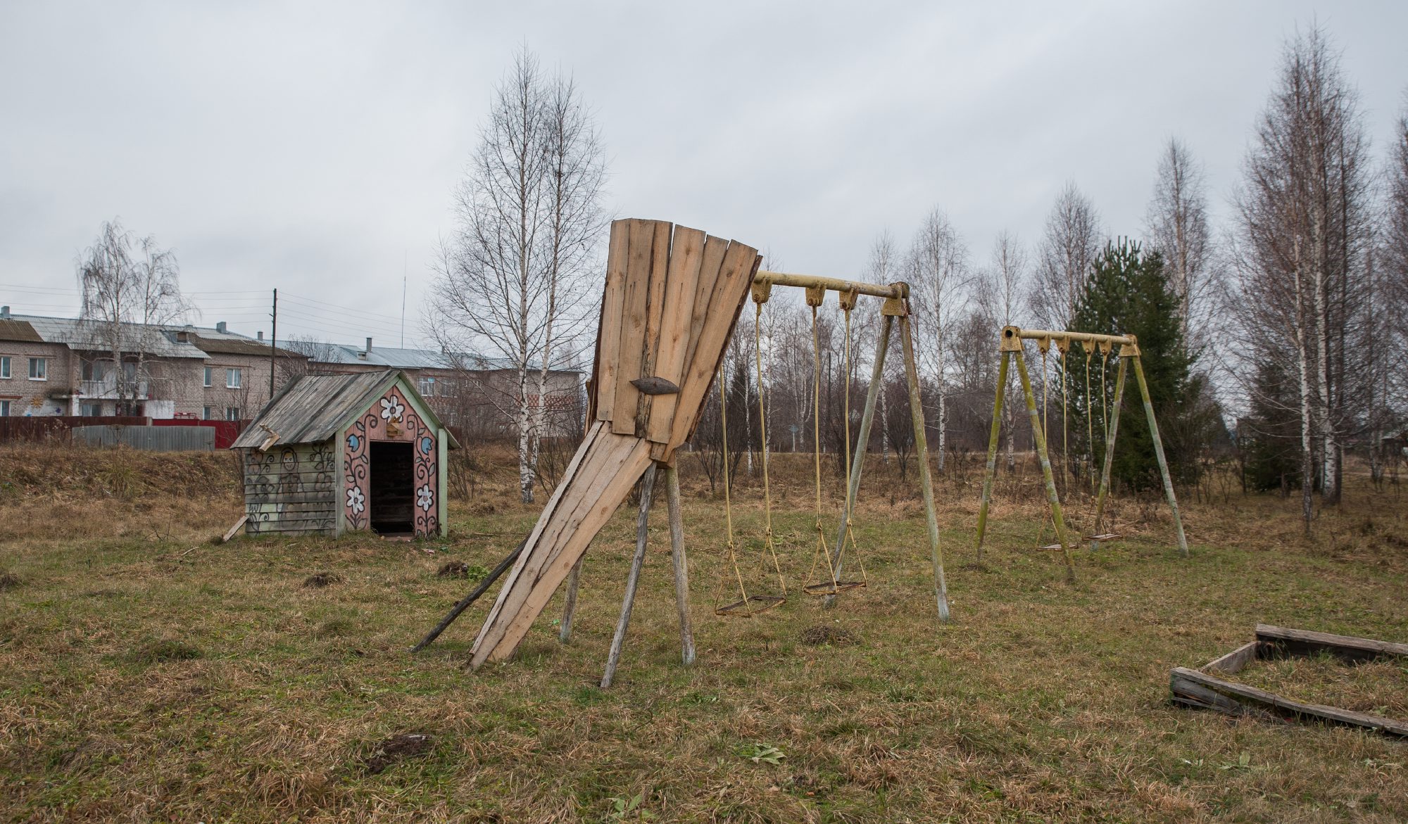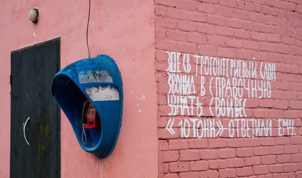 «Нам вот выпало такое, что слона из-под берега вымыло. А еще говорят, что клад у нас зарыт на горе — золото Колчака»Она подтверждает печальные наблюдения Ирины: местным до трогонтериевого слона пока нет никакого дела. В рамках летней арт-резиденции художники вместе с детьми сделали деревянного слона на основе старых качелей. Слон вышел милейший, но кто-то все же оторвал ему деревянный бивень. А самой заметной реакцией местных жителей на активность художников стало ворчание по поводу того, что Ирина, мол, учит детей писать на стенах. Как раз на эти росписи мы и идем смотреть, покинув краеведческий музей.