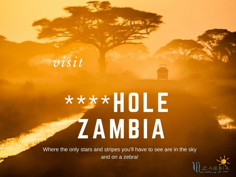 Туристический сайт о Замбии разместил на своей странице в Facebook призывающую посетить страну рекламу, остроумно использовав в ней нашумевшие слова президента США Дональда Трампа, который в одном из своих недавних выступлений назвал страны Африки "задницей мира".