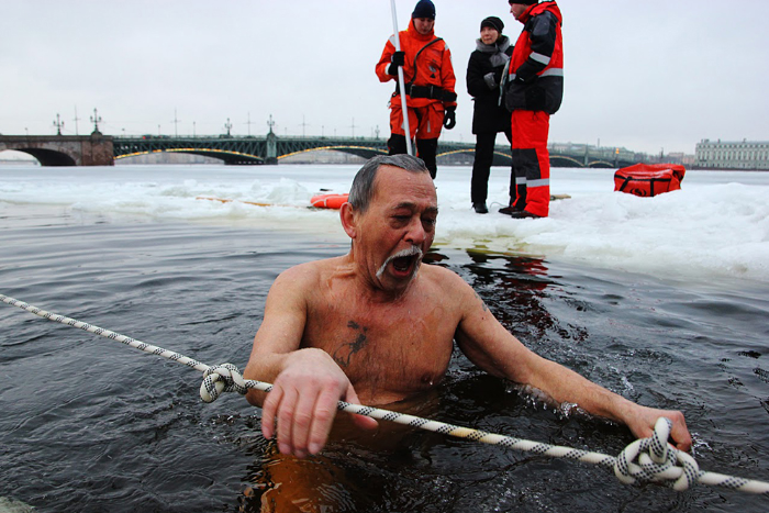 Спасатели не рекомендуют погружаться в прорубь больше, чем на 2 минуты. До проруби нужно идти в обуви, раздеваться перед купанием следует постепенно: сначала снять верхнюю одежду, а через несколько минут обувь.