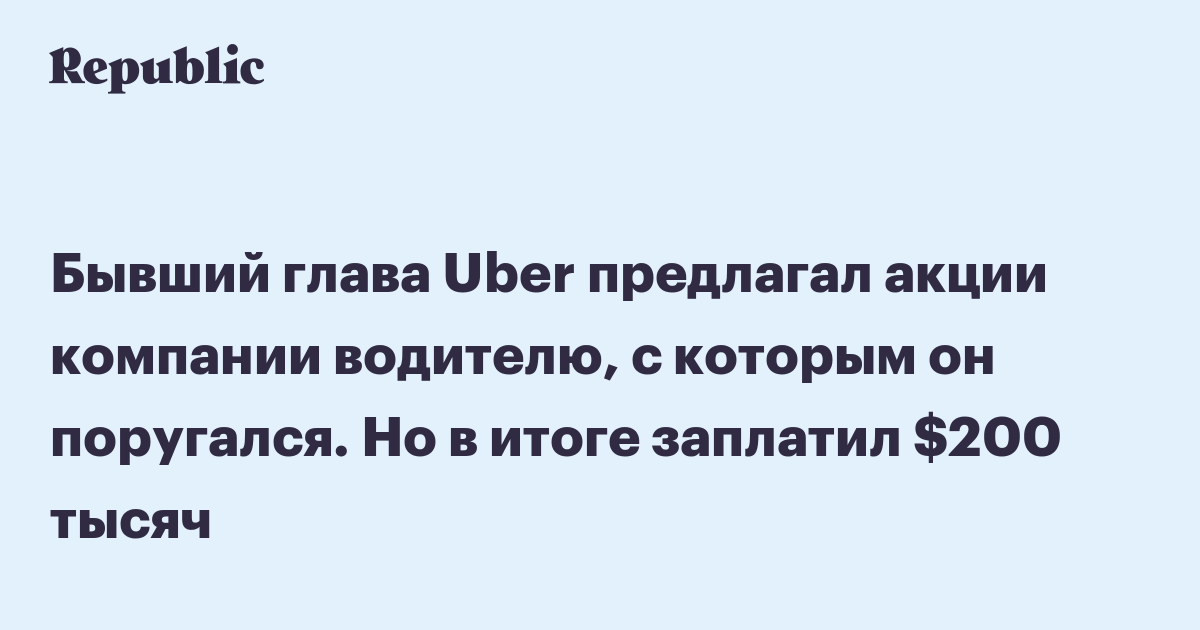 Бывший глава Uber предлагал акции компании водителю, с которым он поругался. Но в итоге заплатил $200 тысяч