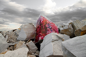 Мы увидели брошенный карьер как монумент антропогенному насилию. Насилие любой природы всегда переживается и представляется телесно, вызывает телесный отклик. Мы внедрили свою работу в природу, не насилуя ее и не изменяя ее форм, и показали обнаженную мраморную плоть земли как кровоточащую рану, наделив камни свойствами живого тела, поместив на расколотые мраморные глыбы полимерные пленки с искусственным изображением ран, повторявших реальные производственные сломы. Этот проект располагался в расширенном поле, описанном Розалинд Краусс, и был, если пользоваться ее термином, формой marked sites, «маркировки места». Другая очевидная референция — абстракции Отто Пиене с выразительной фактурной поверхностью, напоминавшей травмированное тело и отсылавшей к травме мировой войны.