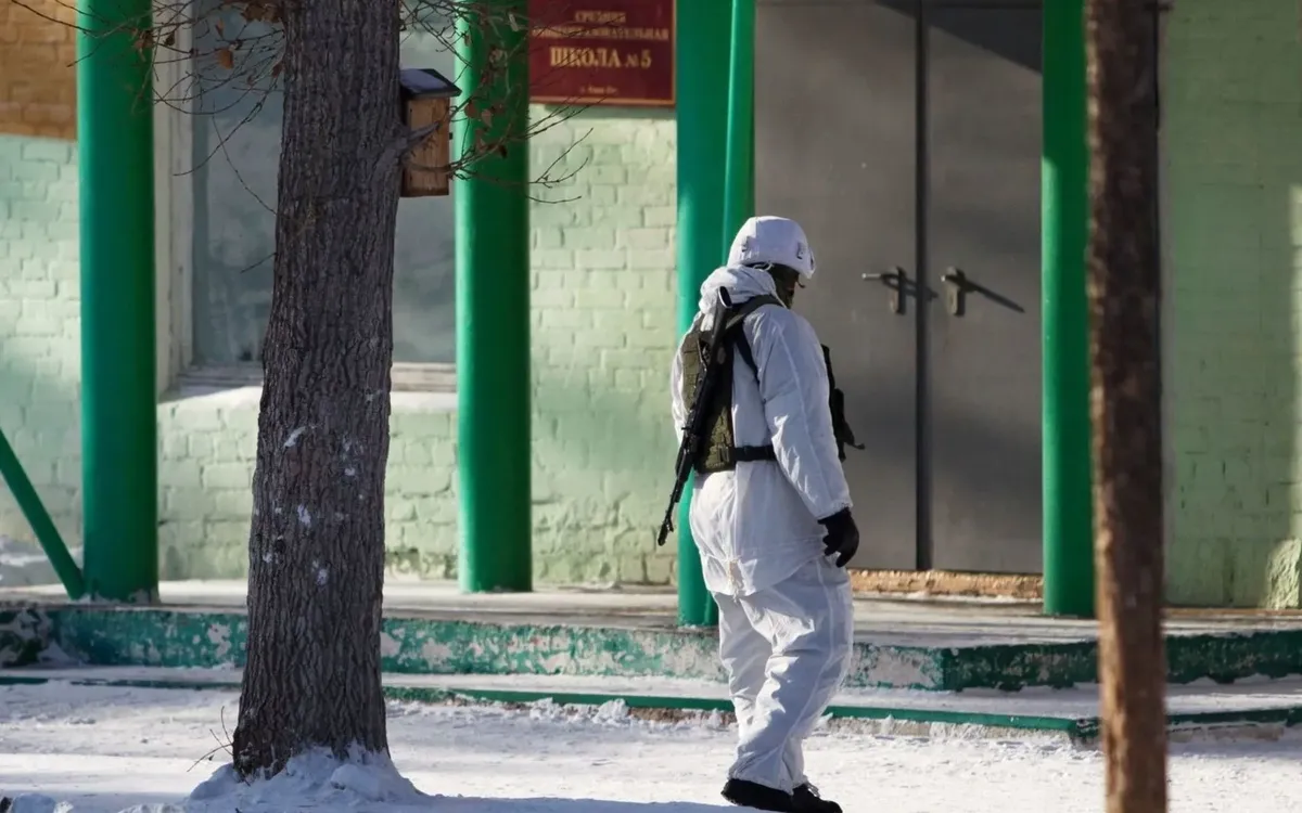 Как рассказали «Новой» местные журналисты, приехавшие на место, весь городок оцеплен военными, на его территорию пропускают только местных жителей, и даже увидеть школу издалека невозможно.