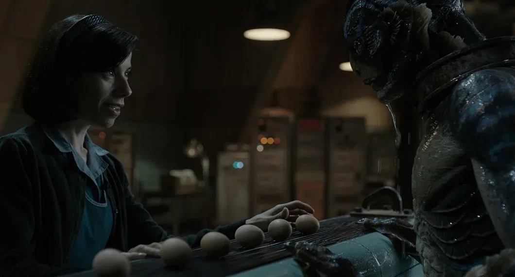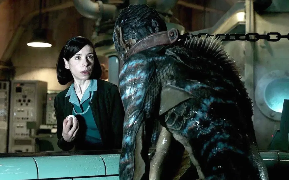 Это самая бесхитростная, наивная история в фильмографии знаменитого автора изысканных готических хорроров. Сказка, приправленная сиропом, натурализмом и авторским саундтреком Александра Деспла. Местами чрезмерно сентиментальная, предсказуемая. Отсылающая нас к «Красавице и Чудовищу», «Кинг-Конгу», «Чудовищу из черной лагуны» и даже «Русалке». Но затягивающий, словно морское дно, визуальный ряд с выдержанной палитрой от изумрудного до черного — превращает фильм в сеанс магии. Как и фильм «Артист» — это посвящение старому кино, в котором на самом крупном плане были не шарахающие по глазам и перепонкам аттракционы, но чувства. Преувеличенные, не стесняющиеся сентиментальности. Облаченные не в слова — в жесты, взмах ресниц. И благодаря воображению не только авторов, но и зрителей немые актрисы обретали голоса… Точно как Элиза в великолепном исполнении Салли Хокинс. Фильм удостоен главного приза Венецианского кинофестиваля, а Гильермо дель Торо получил «Золотой глобус» как лучший режиссер.