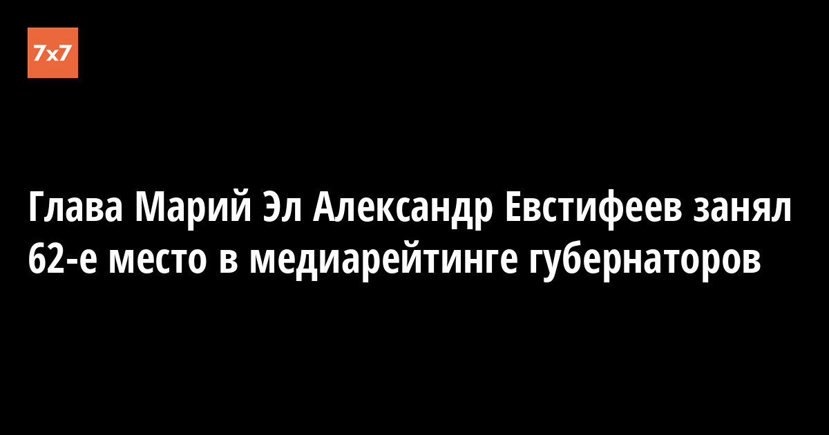 Глава Марий Эл Александр Евстифеев занял 62-е место в медиарейтинге губернаторов