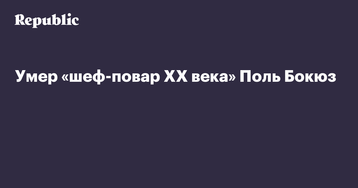 Французский шеф-повар Поль Бокюз, один из основоположников «новой кухни» (nouvelle cuisine) умер. Об этом сообщил министр внутренних дел Франции Жерар Коллон.