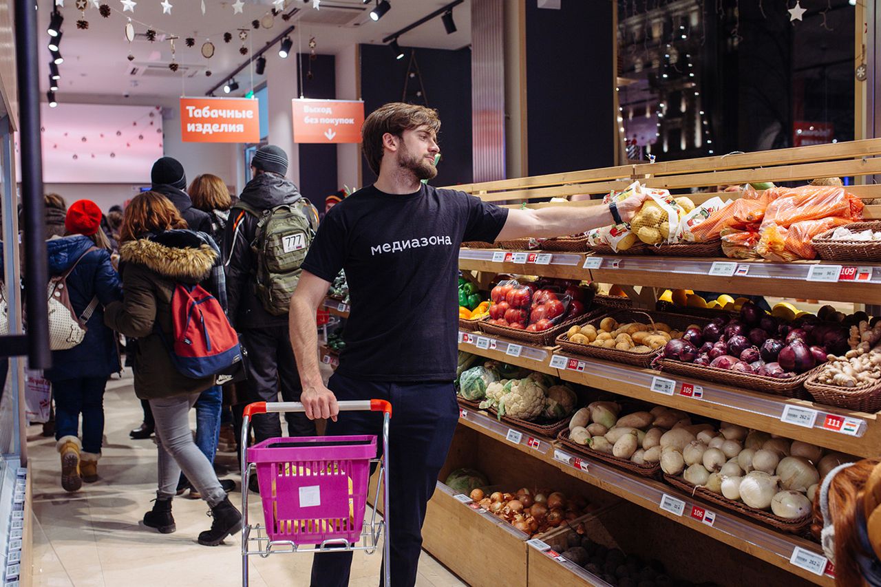 Акционистка Катрин Ненашева в конце прошлого года открыла Центр Стабильного Искусства «Каждый день» в панельном доме в спальном районе. Регулярно у касс в «Ашане» прикидываются мёртвыми активисты организации «Правда о еде». В прошлом году больше ста людей легли на пол в «Ашане „Гагаринский“», протестуя против введения акцизов на сахар и пальмовое масло, так называемого «налога на бедность». Об ещё одном случае, возможно, протестного акционизма рассказывает, со слов друга, пользователь фейсбука. Тому на собеседовании на должность охранника в «Ашан. Андреевка» показали видеозапись, на которой «несколько старушек быстрым шагом подходили к молочке и заглатывали творожные сырки». Действие пресекли охранники: «Поедание стариками продуктов, не доступных по цене для пенсионеров, уже приняло массовый характер, и такие „банды пенсионерок“ стараются засекать на входе».