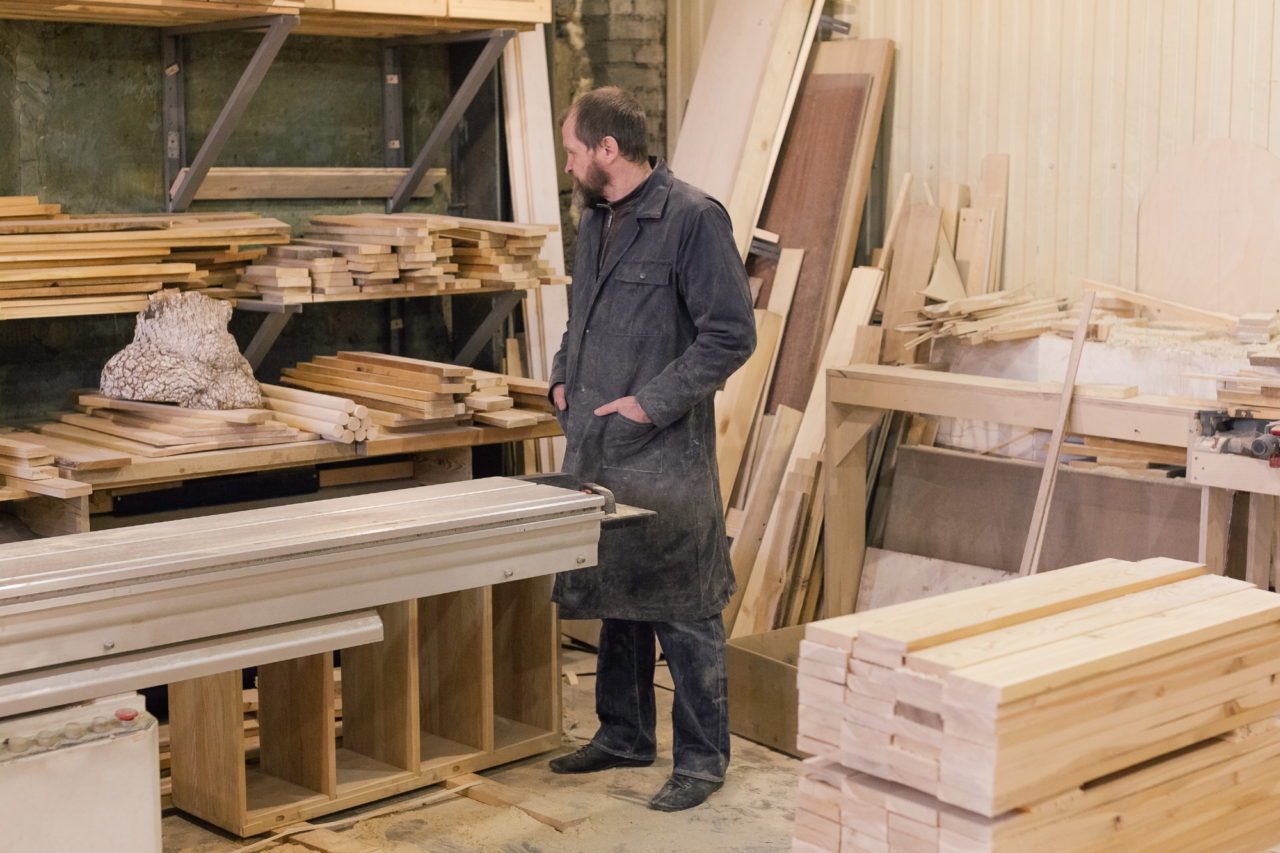 Юрий в своей мастерскойФото: Антон Петров для ТД Однажды один из кормильцев предложил Юрию прийти в церковь. Тот покривился. Но через неделю, в воскресенье, когда тоска съедала хуже голода, вспомнил. Снял с себя все, в чем живут вши: носки, белье, футболку. Остался в грязной олимпийке и штанах. Денег на автобус нет, пешком через весь город не дойти. Но все равно пошел. Еле пробрел половину пути, а впереди еще километра четыре. Взгляд упал на единственное, что связывало с внешним миром — бережно хранимый старый, с треснувшим экраном и севшей батарейкой, Samsung. Подумал: «Зачем он мне? Только позвонить и сказать, что умер. Так он все равно без зарядки». Какой-то прохожий дал за него 100 рублей, и Юра доехал до церкви.