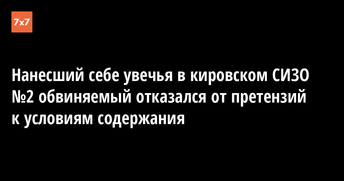 На вопрос о том, почему обвиняемый нанес себе травму, если у него нет претензий к условиям содержания, уполномоченный отвечать не стал, сославшись на то, что лично не знаком с журналистом «7x7».