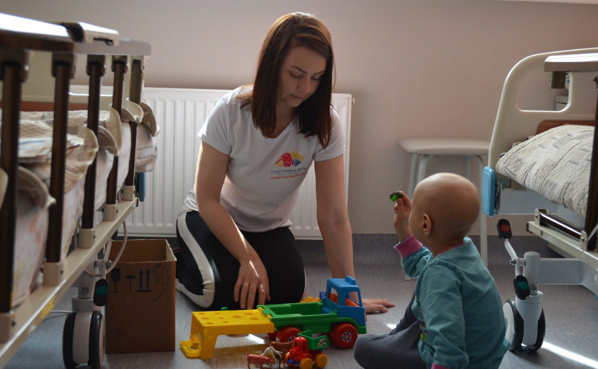 Смены нянь длятся по 12 часов: с 8.00 до 20.00, и хоть проходят они в квадрате палаты, бывают разными. «Просыпается, умываемся, меняем подгузник, завтракаем, потом обход врачей. К Дане приходят много интернов — смотрят, слушают, щупают живот». Дальше день зависит от настроения ребенка. Если была химия — малышу и нужно только лечь, укрыться, нащупать человека, которому он доверяет, и дремать. Если капельница не назначена, идут в игровую, и здесь всегда случаются маленькие открытия и свершения Дани: собирает пазлы, мозаики, учит новые слова, действия. С каждым днем он говорит все больше слогов: ка — каша, ча — чай. И это успех. «Вечером снова душ-подгузник. Обнимет любимого червячка и засыпает. Забавно, но перед уходом всегда стираю его любимую кофту, вот хочет только ее носить — утром снова ее надеваем».