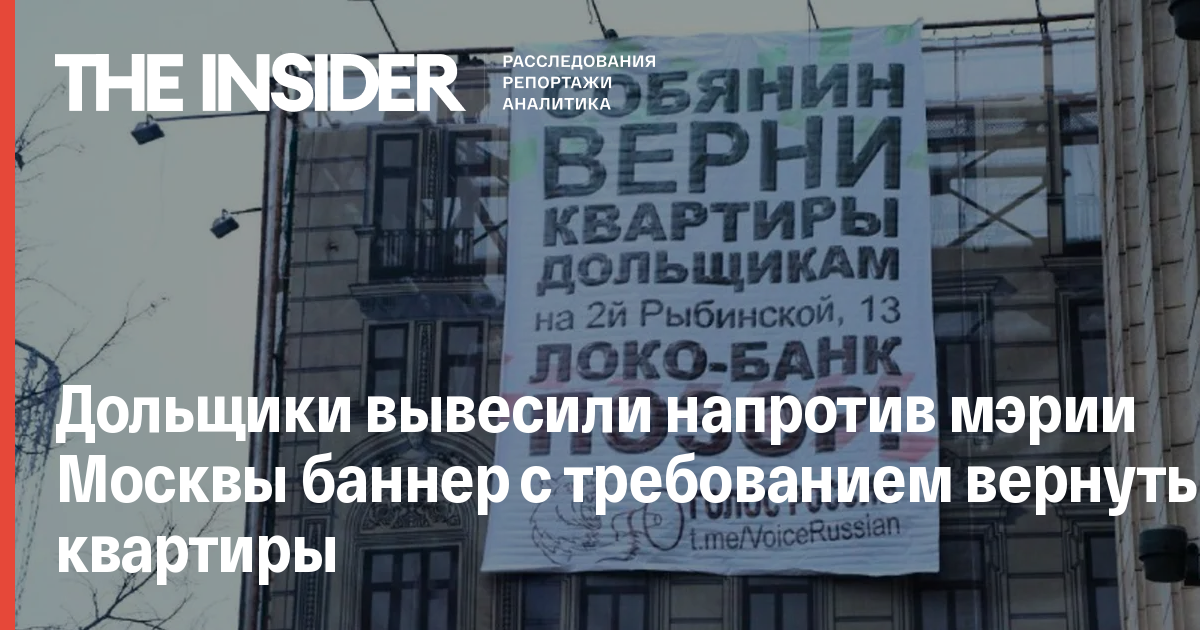 Напротив столичной мэрии появился плакат с надписью «Собянин, верни квартиры дольщикам». Об этом The Insider рассказала одна из активистов Валентина Константинова.