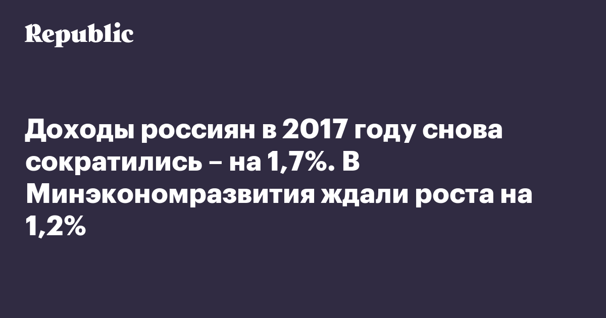 Доходы россиян в 2017 году снова сократились – на 1,7%. В Минэкономразвития ждали роста на 1,2%