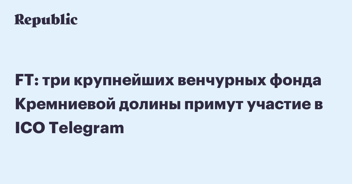FT: три крупнейших венчурных фонда Кремниевой долины примут участие в ICO Telegram