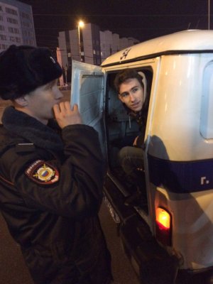 На перекресток возле торгового центра «Плаза», где Алексеев раздавал листовки, приехали два полицейских автомобиля. Алексеева около часа продержали там, снимая на видеокамеры. Затем его отвезли в местное УВД для дачи объяснений.