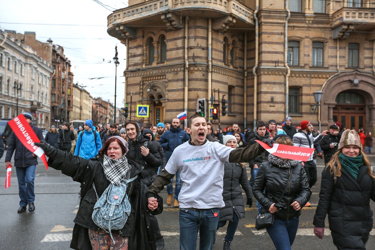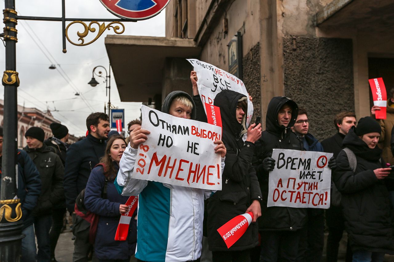 Не меньше трех тысяч сторонников бойкота выборов президента вышли 28 января на акцию в поддержку «Забастовки избирателей» в Санкт-Петербурге (по оценке «Медузы»). Акция была несанкционированной, но полиция ее участникам практически не мешала, только несколько раз перегораживала путь. В итоге активисты гуляли по историческому центру Петербурга почти пять часов. Задержаны, по разным данным, от 10 до 20 человек.