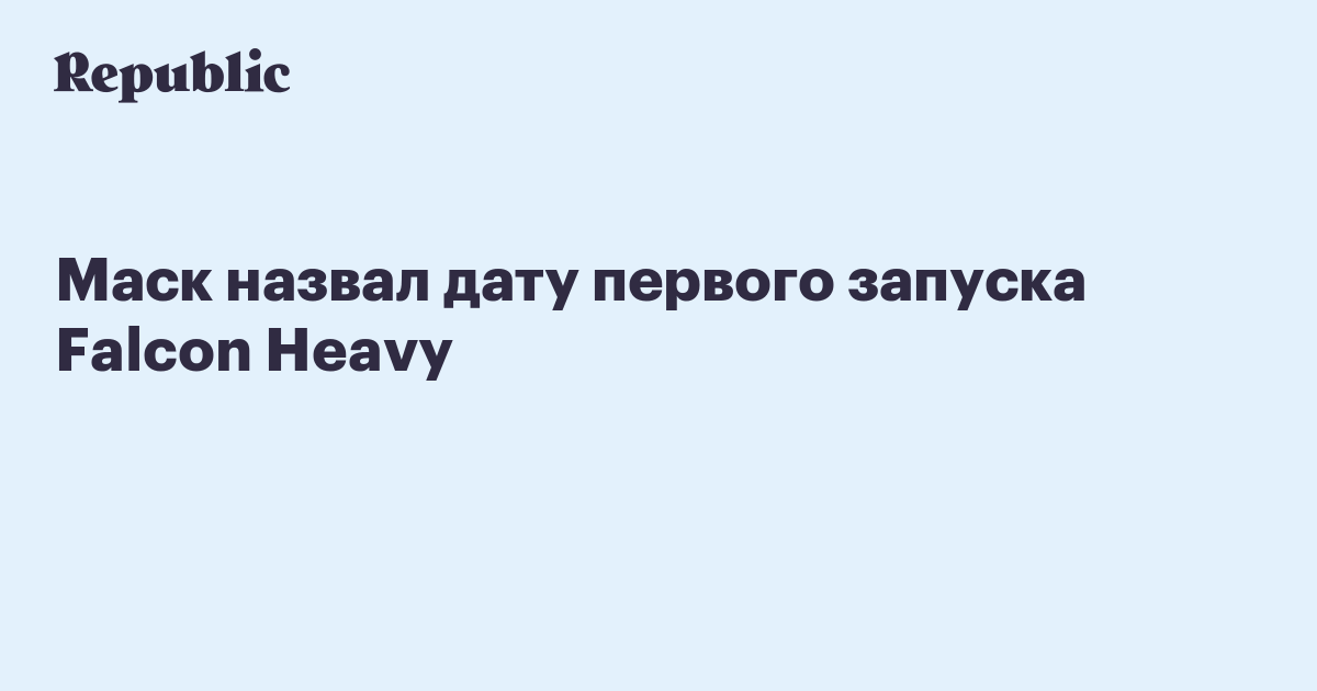 Изначально первый запуск Falcon Heavy планировался на январь 2018 года. По какой причине он отложен на февраль, Маск не уточнил.