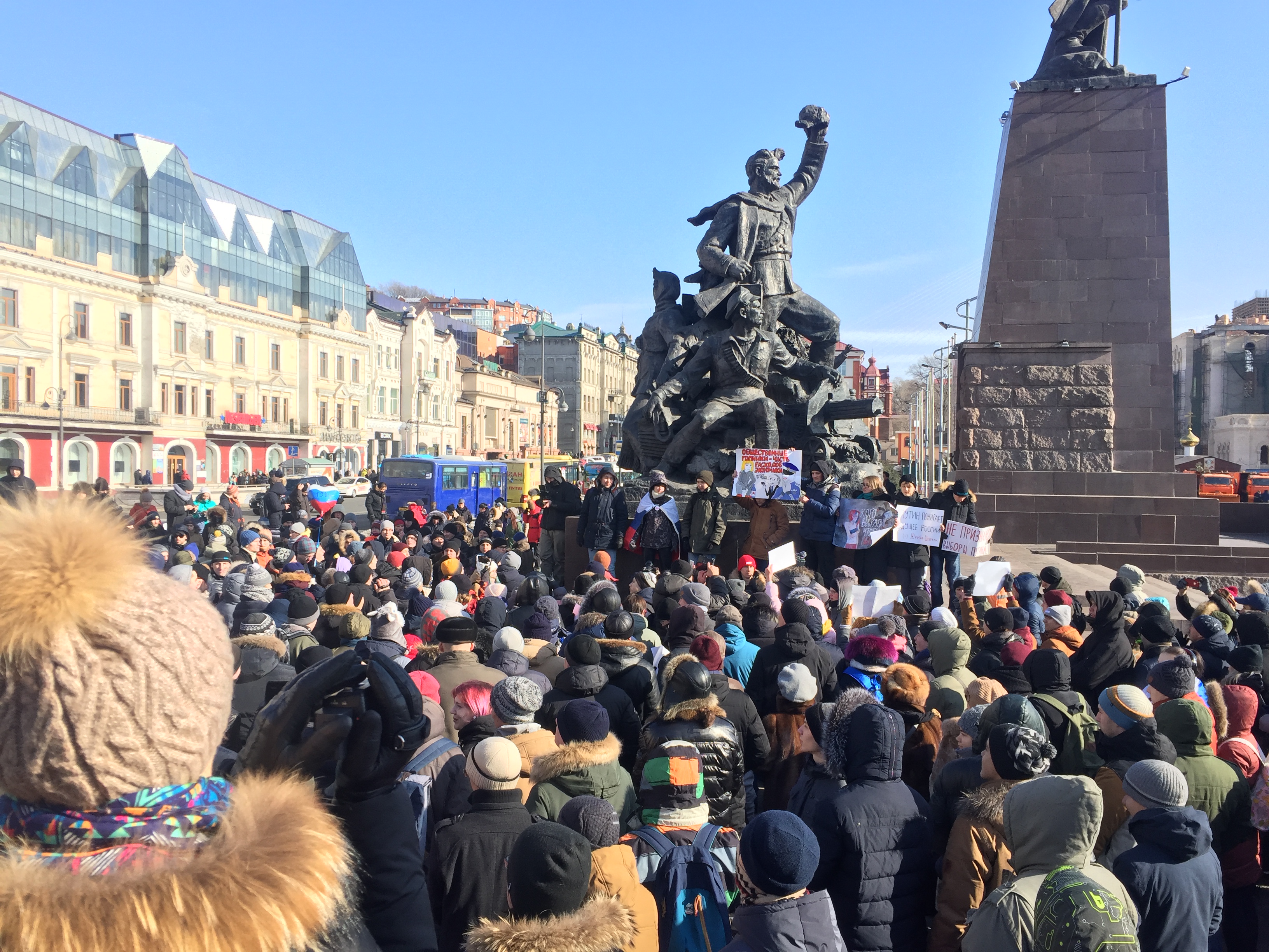 Позже хабаровские власти разрешение все же дали, но отказались предоставлять центральную площадь города, сославшись на то, что она будет занята. Сторонникам Навального предложили собраться у стадиона "Динамо". Несмотря на отсутствие координатора, хабаровская "Забастовка" прошла организованно, по некоторым оценкам, на нее собралось несколько сотен человек, которым не помешал и мороз. Утром в городе было около –25.