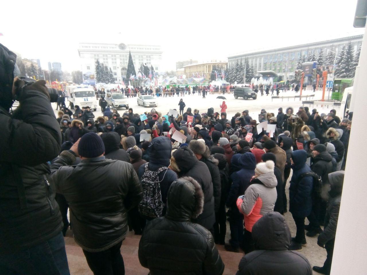 В администрации Кемерова сторонникам Навального отказали в шествии из-за действующего запрета на любые публичные мероприятия в центре города. Митинг разрешили на окраине в частном секторе, ограничив во времени протестную акцию. Тем не менее, несколько десятков протестующих устроили шествие по Советскому проспекту, скандируя лозунги "Россия будет свободной" и "Мы здесь власть". Затем они попытались прорваться на площадь перед мэрией, где в тот момент проходили торжества по случаю 75-летия Кемеровской области и "Дня снега". На площади, по свидетельству очевидцев, очень громко играла музыка, а рядом стояли два автозака и две машины ОМОН.
