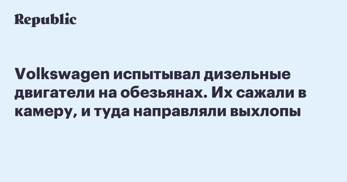 Volkswagen испытывал дизельные двигатели на обезьянах. Их сажали в камеру, и туда направляли выхлопы