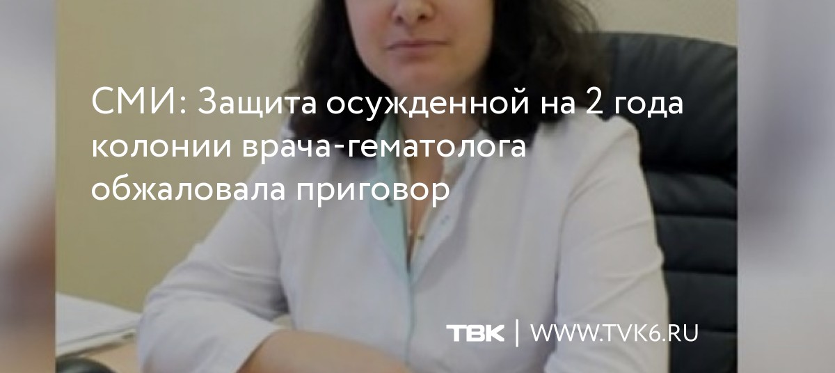 СМИ: Защита осужденной на 2 года колонии врача-гематолога обжаловала приговор
