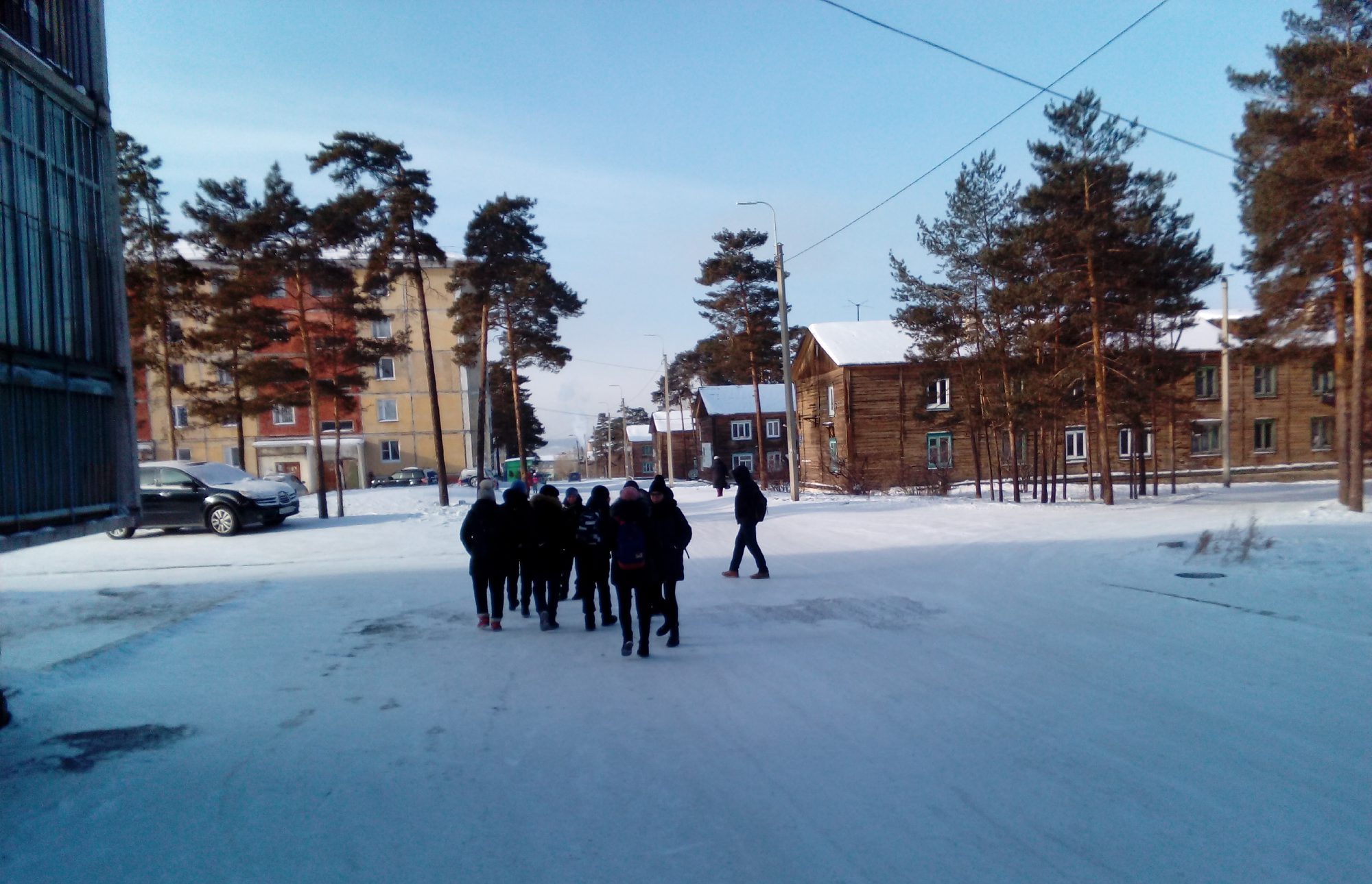 Дома в Сосновом Бору выстроены строго рядами. Дороги расчищены. На снегу ни окурка. И кругом сосны, сосны. Тишина и спокойствие. Детей на улицах не видно. Вышли стайкой из школы — и по домам. И снова безлюдно, до следующего звонка с урока.