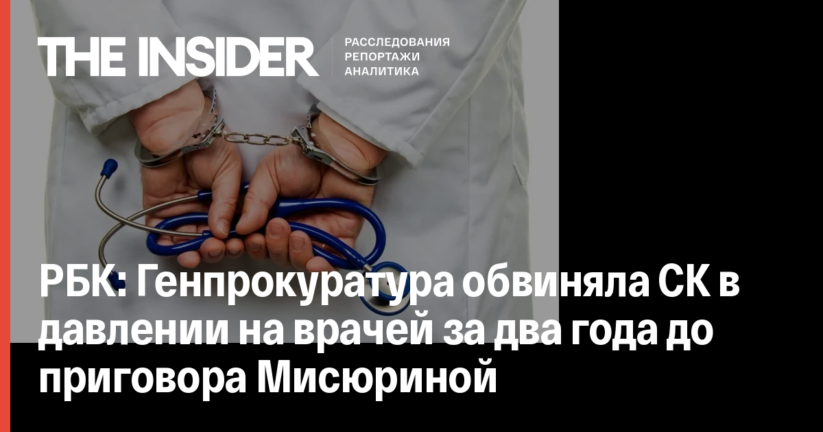РБК: Генпрокуратура обвиняла СК в давлении на врачей за два года до приговора Мисюриной