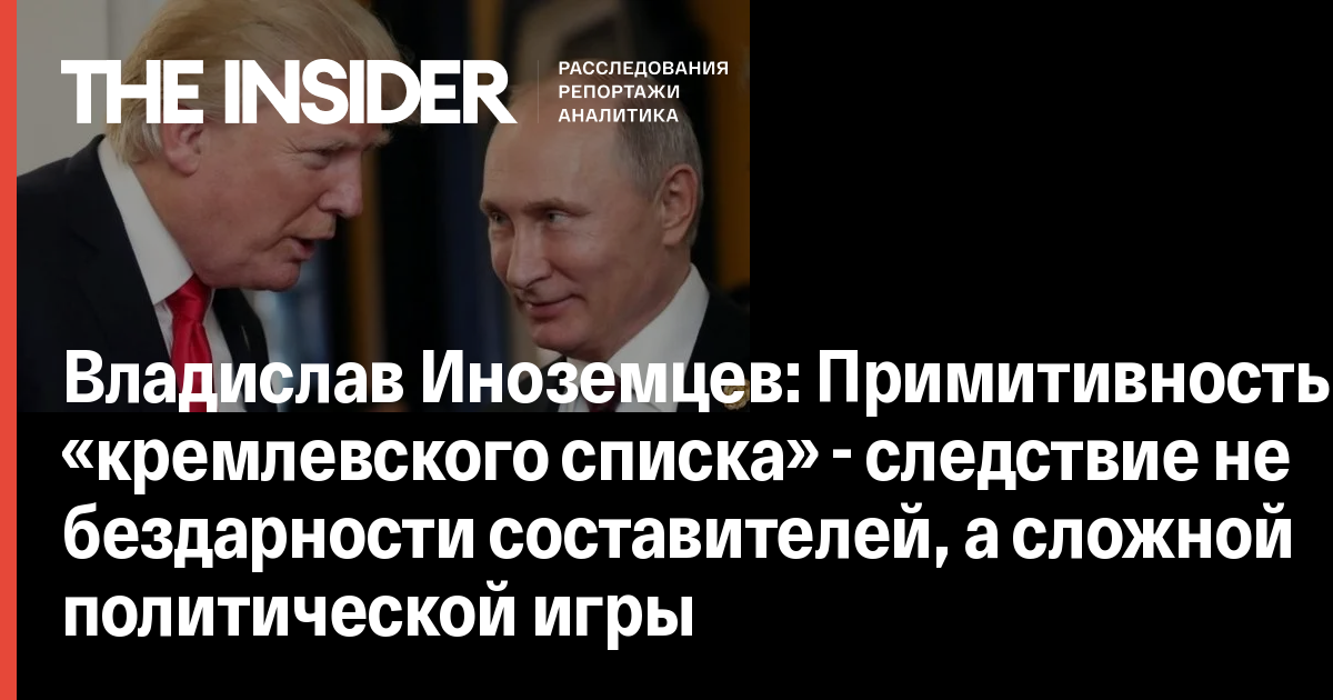 Владислав Иноземцев: Примитивность «кремлевского списка» - следствие не бездарности составителей, а сложной политической игры
