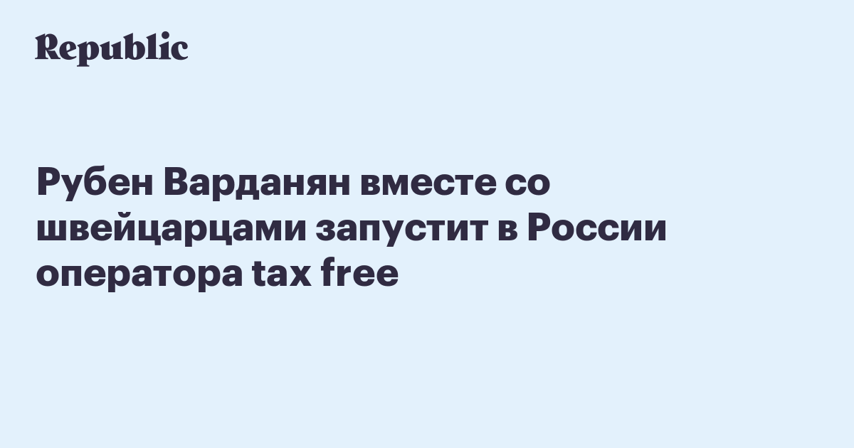 Рубен Варданян вместе со швейцарцами запустит в России оператора tax free