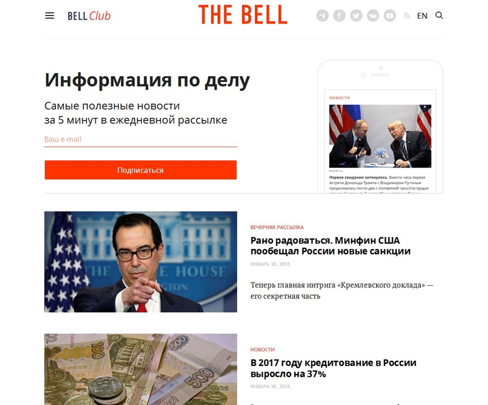 — Это совершенно разные истории. Но сравнивать с какими-то революционными идеями — некорректно. Просто на самом деле у той газеты «Колокол» был упор на эксклюзив. Она опубликовала проект отмены крепостного права, например. Но поскольку в России была цензура, то где еще было публиковать? По журналистским меркам, это крутой эксклюзив? Если бы у нас был эксклюзив про то, как в России планируется реформировать систему, не знаю даже с чем сравнивать... Но у этого проекта другая задача. Мы когда разговаривали с аудиторией, да и у меня были такие же ощущения, чувствовали, что из-за противостояния России и остального мира, люди в России чувствуют себя отрезанными. Во всяком случае, они попали в ситуацию, когда Россия противостоит и сложнее даже просто себя презентовать. Ты либо какой-то оппозиционер и изгнанник, либо ты кто? Российский бизнесмен? Но кому ты нужен сейчас? Мне кажется, что это неправильно, контрпродуктивно и скоро должно закончиться — все по закону сохранения энергии, так как на это тратится действительно много энергии. Но это произойдет в будущем, а люди живут здесь и сейчас и у них должен быть какой-то проводник информации, который их соединяет. Поэтому мы рассказываем в нашей рассылке о разных передовых идеях, которые есть во всём мире, рассказываем о том, что есть в России, и частично мы рассказываем про то, что происходит в России, на английском языке. Наша далеко идущая цель — сделать, грубо говоря, глобальное медиа.