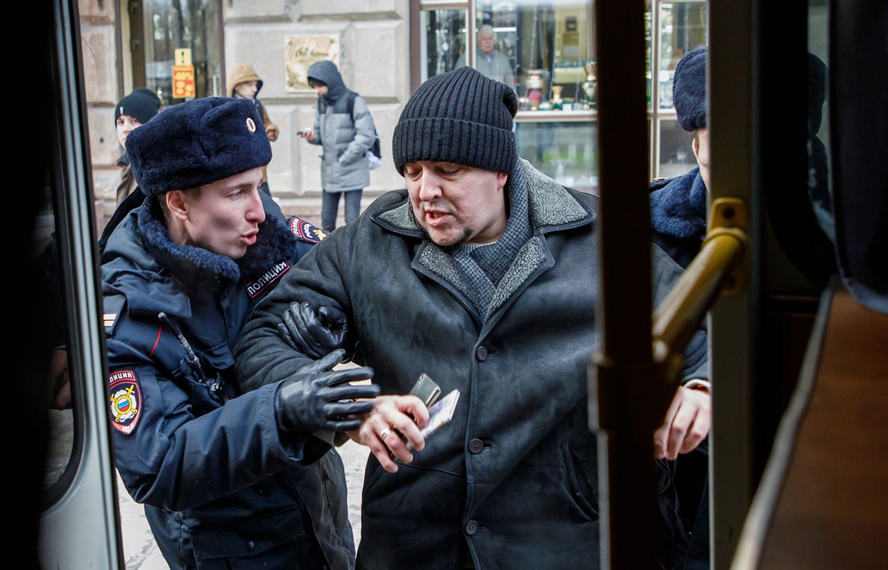 Перед акцией я понимал, что, наверное, уж полицейские смогут отличить меня от активиста, который выкрикивает лозунги и идет с плакатами, — и не переживал. А полицейские очень хорошо понимали, кто здесь журналист. Самыми первыми начали задерживать именно нас. Я все время забегал вперед, чтобы снимать колонну, и ко мне подошли двое в форме со словами: «Что вы делаете?» Я показал редакционный бейдж с печатью и сказал, что журналист. В ответ полиция мне сказала: «А мы и не заметили! Будем потом разбираться, а теперь идите с нами в автобус». Я успел поснимать акцию только семь минут и пошел в автозак. Там к нам подошел полицейский и с таким пониманием сказал: «Парни, извините, никаких претензий лично к вам нет. Вы тут немного посидите, и мы вас без проблем отпустим».