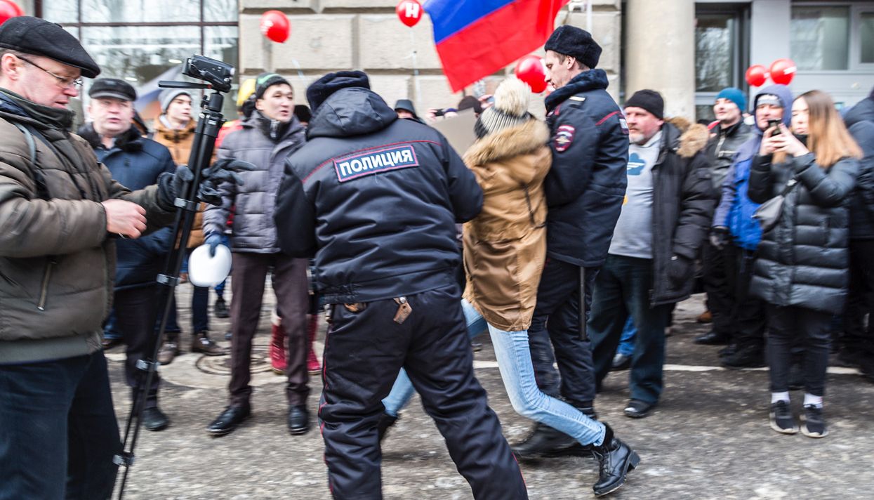 Я работал максимально корректно, понимая, что акция не согласована, возможны какие-то беспорядки или провокации. Сбор людей начался около 14:00. В 14:30 колонна пошла по проспекту Ленина в сторону центра. На выходе из подземного перехода полиция, в том числе ОМОН, преградили толпе путь. Пройти удалось лишь около 150 метров. Здесь начались первые задержания.