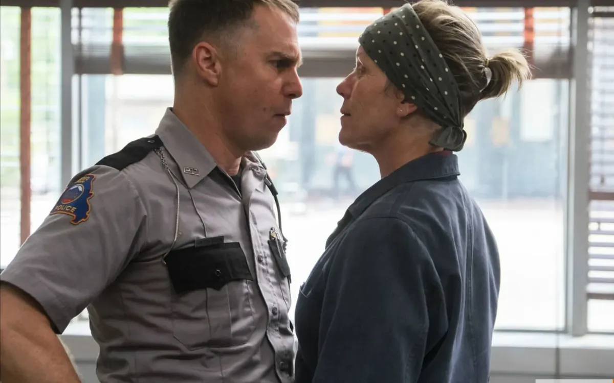 В мрачной, балансирующей между комедией, трагедией, абсурдом и реализмом истории нет правых и виноватых. Макдонах связывает клубок конфликтов из взаимоотношений сложных людей. И это множественность взглядов на происходящее – покруче любого 3D. Шериф Уиллоуби, приговоренный неизлечимой болезнью, старается не только быть хорошим мужем и отцом, но и понять убитую горем женщину. Его помощник Диксон (Сэм Рокуэлл) – безжалостный с «нигерами»… инфантил и маменькин сынок (взаимоотношения мамы и сына – почти цитата из «Мотеля Бейтса»). Тупой жесткий коп… рыдает, потеряв товарища и шефа, и протягивает руку тому, кто его чуть не убил (СэмРокуэлл). Карлик Джеймс (Питер Динклэйдж) покрывает неистовые выходки Милдред, отчетливо и безответно ей симпатизируя. Персонажи — выходцы из американского дна — нарисованы острым грифелем, почти карикатурно. Но из-под сухой графики прорываются сокрушительные человеческие страсти, комплексы, неуверенность, ранимость.