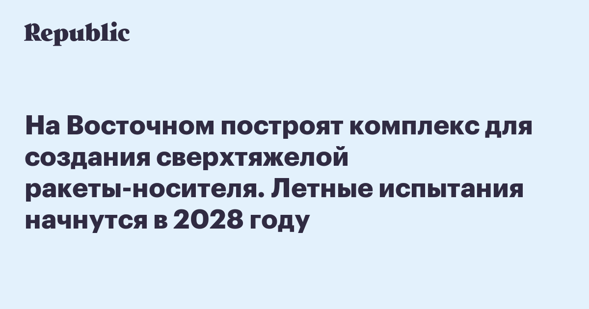 На Восточном построят комплекс для создания сверхтяжелой ракеты-носителя. Летные испытания начнутся в 2028 году