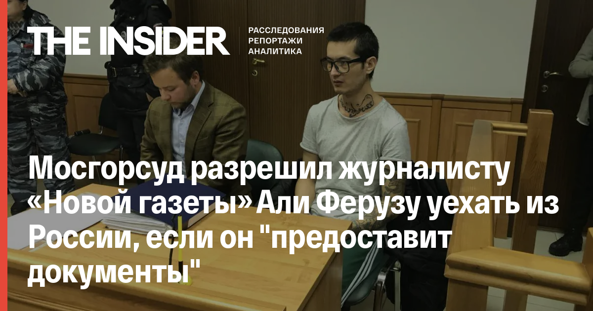 Мосгорсуд разрешил журналисту «Новой газеты» Али Ферузу уехать из России, если он представит необходимые документы, передает «Медиазона».