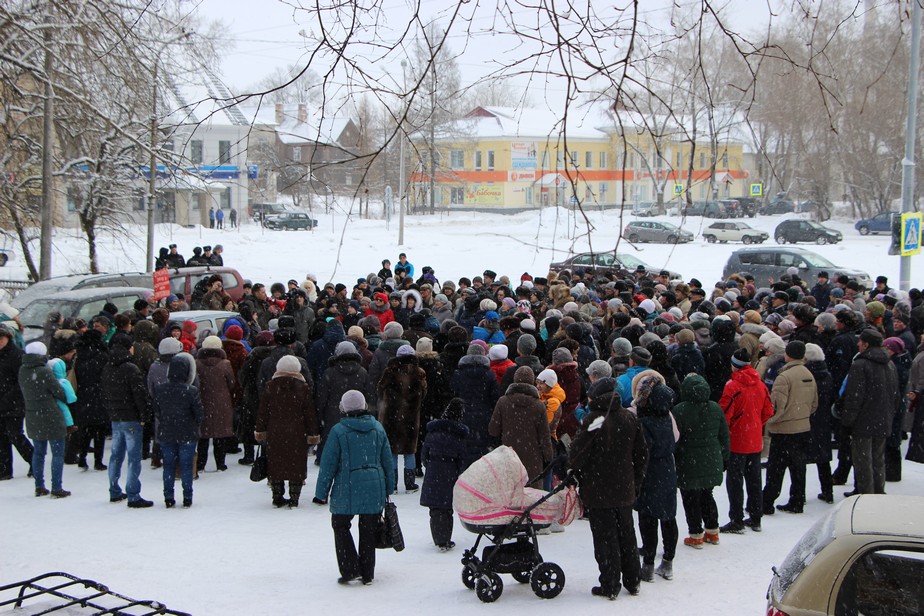 Но депутат ошибся — толпа людей плавно стекалась на главную площадь Сегежи, к местному Дому культуры почти все то время, что шел митинг. Пожилые люди с тростями в руках, молодежь с колясками и детьми на санках — люди все плотнее окружали организатора, чтобы лучше слышать, о чем говорит человек с красным мегафоном в руках.