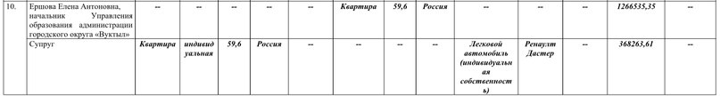 Заходим на сайт муниципалитета, ищем там Елену Ершову. И действительно — Ершова Е.А. – начальник Управления образования администрации городского округа «Вуктыл». Начинаю подозревать неладное! Но пока не тороплюсь с выводами. Смотрим декларацию: