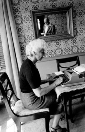 Владимир и Вера Набоковы. Итака, 1958. Фото Карла Майданса На другом снимке профессор Набоков, отраженный в зеркале, диктует что-то усталой Вере, сидящей за пишущей машинкой, словно органист за органом. Эта фотография не только наводит на мысль о «Портрете четы Арнольфини» ван Эйка, одной из любимых картин Набокова, но и возвращает к мысли о постоянном присутствии Веры в вогнутых и выпуклых зеркалах Владимира. В зеркалах Владимира Набокова именно Вера Слоним была главным адресатом — персонажем — героиней вселенной Набокова, чему свидетельством — подаренная русскоязычным читателям книга «Письма к Вере».