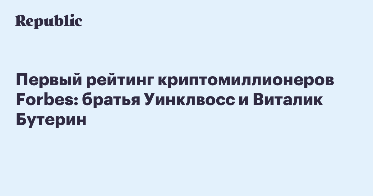 Первый рейтинг криптомиллионеров Forbes: братья Уинклвосс и Виталик Бутерин