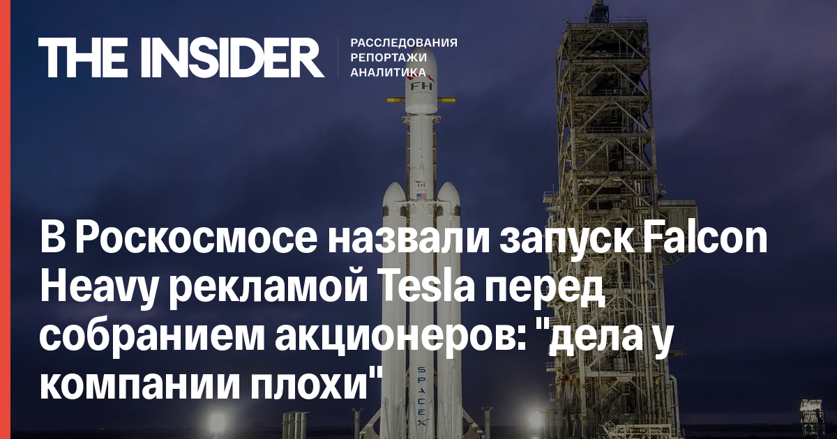 В Роскосмосе назвали запуск Falcon Heavy рекламой Tesla перед собранием акционеров: "дела у компании плохи"