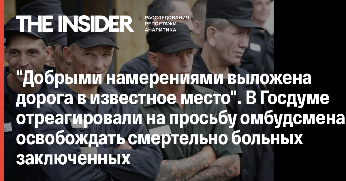 "Добрыми намерениями выложена дорога в известное место". В Госдуме отреагировали на просьбу омбудсмена освобождать смертельно больных заключенных