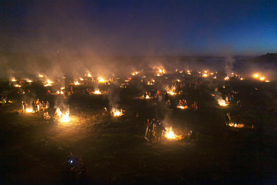 В живописной долине реки Угры у деревни Никола-Ленивец художник расставил на грубо сколоченных пьедесталах целую сотню своих деревянных зверей и предложил зрителям одновременно поджечь эти необычные «дрова». Энергия от сожженных скульптур, преобразованная в «ментальное топливо», неизбежно дала импульс новым поискам Мартинса.
