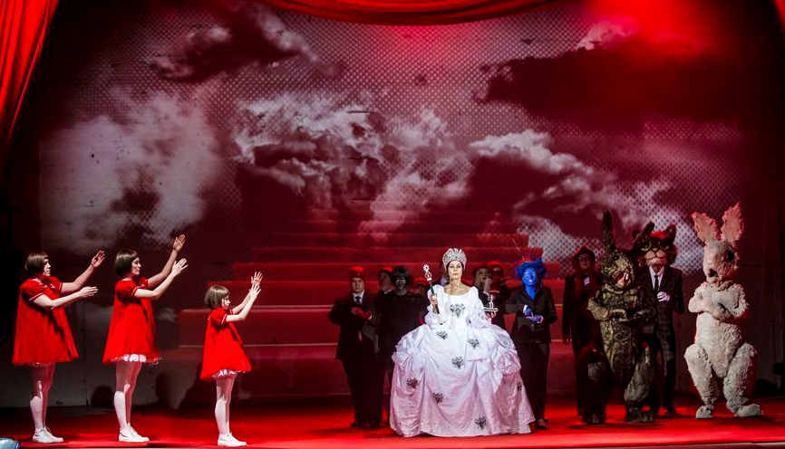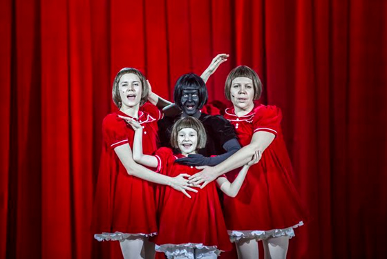© Театр на Таганке У таганских Алис — три лика времени, три возраста (маленькая — Анастасия Мутигуллина, постарше — Дарья Авратинская и самая взрослая, чуть печальная, — Екатерина Рябушинская), но лицо одно, экранное, придуманное соавтором Диденко — сценографом Марией Трегубовой на основе иллюстраций из старых английских книжек. Возможно, та Алиса, что старше всех, еще помнит советское Зазеркалье, но и для нее оно — скорее, тоже картинка из книжки. Чувственные связи оборваны, трепещут только пустые оболочки памяти, образы, в которых давно нет жизни.
