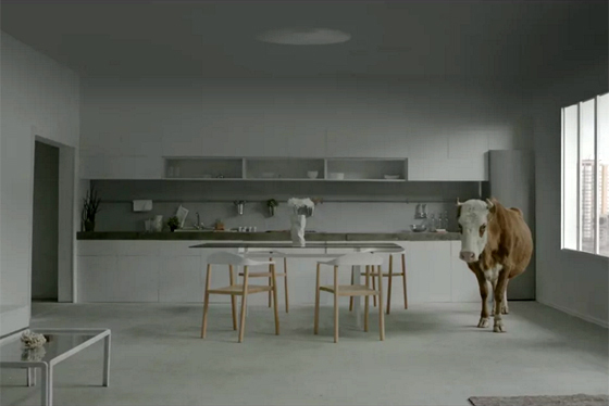 Синопсис: Идеальная семья — мама, папа, дочь, сын и дедушка — живет на 14-м этаже многоквартирного дома. Однажды утром у них на кухне появляется корова.