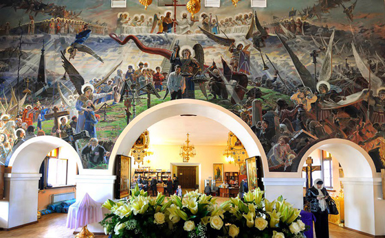 Зотов: Тут очень важно различие между разными конфессиями. Что-то, что неприемлемо для русских православных, для украинских грекокатоликов может быть абсолютно нормальным — скажем, икона Богоматери с младенцем, который держит футбольный мяч, сделанная на Украине к чемпионату мира по футболу, росписи, где среди ангелов, Святого семейства и других святых встречаются политические персонажи: есть, скажем, святое семейство Ющенко, достаточно известная икона. Есть примеры «осовремененных» фресок и в России — например, «Страшный суд» Павла Рыженко, где ад изображен как падение Америки и доллара, а в рай входят только русские. Я думаю, что такие доступные «слои» политизированной информации возникают, в первую очередь, потому, что политика сегодня вездесуща. Многим прихожанам приятно считывать современность в иконах, во фресках, в других церковных произведениях. Но так исторически сложилось, что в православной церкви больше уважения к канону, поэтому иконографические рамки должны в основном оставаться незыблемыми — во всяком случае, так это видит широкая публика, — и, когда православное изображение пытаются осовременить, большинство людей искренне недоумевает или возмущается. В то же время католики абсолютно нормально относятся к такого рода экспериментам, потому что они у них происходили на протяжении всего Средневековья, Нового времени и современности. Поэтому важно понимать, что нет никакой иконографии в вакууме — она всегда заточена под зрителя, и, как результат, «странных» изображений в православном каноне появляется мало, а если они и возникают, то в основном благодаря маргинализированным движениям внутри православия вроде скопцов, царебожников или последователей Русской катакомбной церкви истинно-православных христиан.