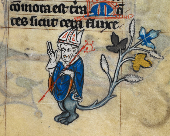 Порой странные маргиналии на самом деле привязаны к тексту — но не к его общему смыслу, а к конкретным отрывкам или словам, которые они визуализируют или как-то обыгрывают. Некоторые из таких рисунков могли служить чем-то вроде зарубок, помогающих взгляду читателя ориентироваться в священном тексте или в гигантском, состоящем из тысяч параграфов юридическом трактате.
