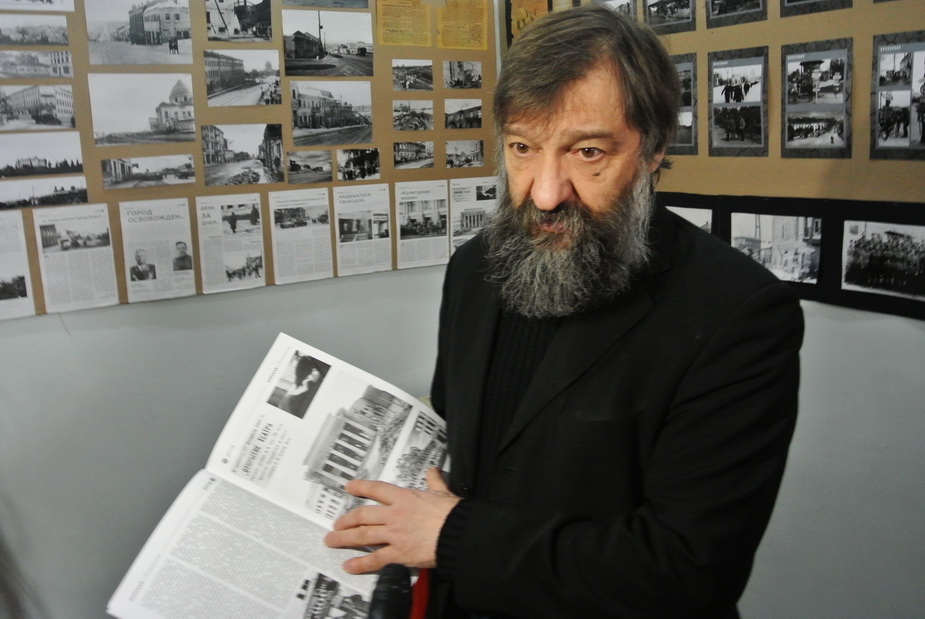 Жители Курска 8 февраля отметили 75-ю годовщину освобождения от немецко-фашистской оккупации. К этой дате в курской частной художественной галерее «АЯ» открылась выставка «Сотворение мира», в основу которой лег документальный фильм «Освобождение Курска» из российского архива кинофотодокументов. Выставку создали художник-галерист Олег Радин и историк-краевед Виктор Крюков. Они много лет выпускали краеведческий альманах «Курская летопись». О том, с чего начинали курские краеведы, и о проблемах сохранения исторического облика Курска Олег Радин рассказал в интервью «7x7».