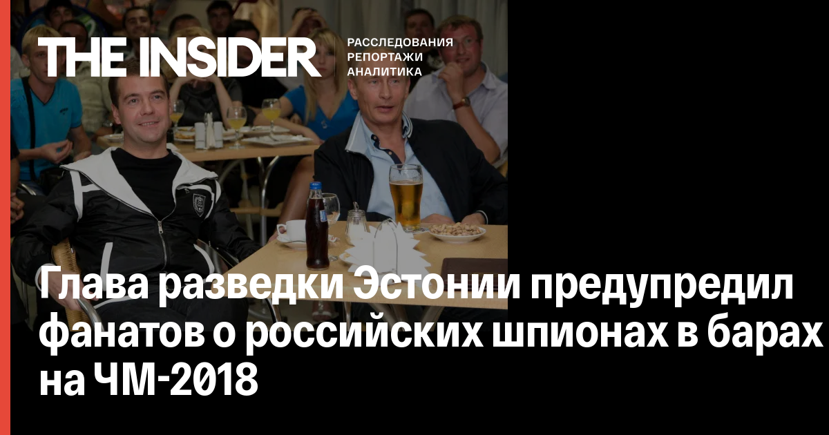 Глава службы внешней разведки Эстонии Микк Марран призвал болельщиков остерегаться российских шпионов, которые попытаются добыть у них информацию или шантажировать их во время чемпионата мира по футболу. Об этом сообщает The Times.