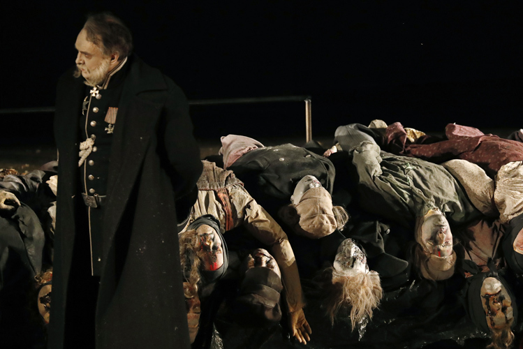 Волнения в узких кругах вызваны всего лишь обманутыми ожиданиями — ведь из Питера докладывали, что это событие года и города. В Москве спектакль не пошел, развалился — я была на первом [из двух показов в рамках «Золотой маски»]. Дело, конечно, живое, но все равно: неудача. Механический набор аттракционов, вполне замшелых. При чем тут магриттовские персонажи в котелках? Они же орлята, персонифицирующие, надо думать, орден Белого орла. Но кому эта символятина понятна? Ну да, имеется диалог, так сказать, с немым кино. Не потому ли включается закадровый голос, пересказывающий сюжет, устаревший донельзя? Конечно, это спектакль-анахронизм. Но мог быть хотя бы добротным, а не претенциозным и наивным. Здесь эксплуатируются приемы срединного театра-театра для окультуренной, наверное, публики. Той, которой на попсу ходить западло, а на концептуальный театр в своем же городе — скучно. Чтобы было повеселее, внедряются крупные планы артистов и внесценического народа на экранах, разбитые стекла, световые принуждения, громкие выстрелы, гимназистки и снег. Тщетная предосторожность. Предлагаю ввести на сцене мораторий на снег и дождь — не только в память стрелеровского «Кампьелло».