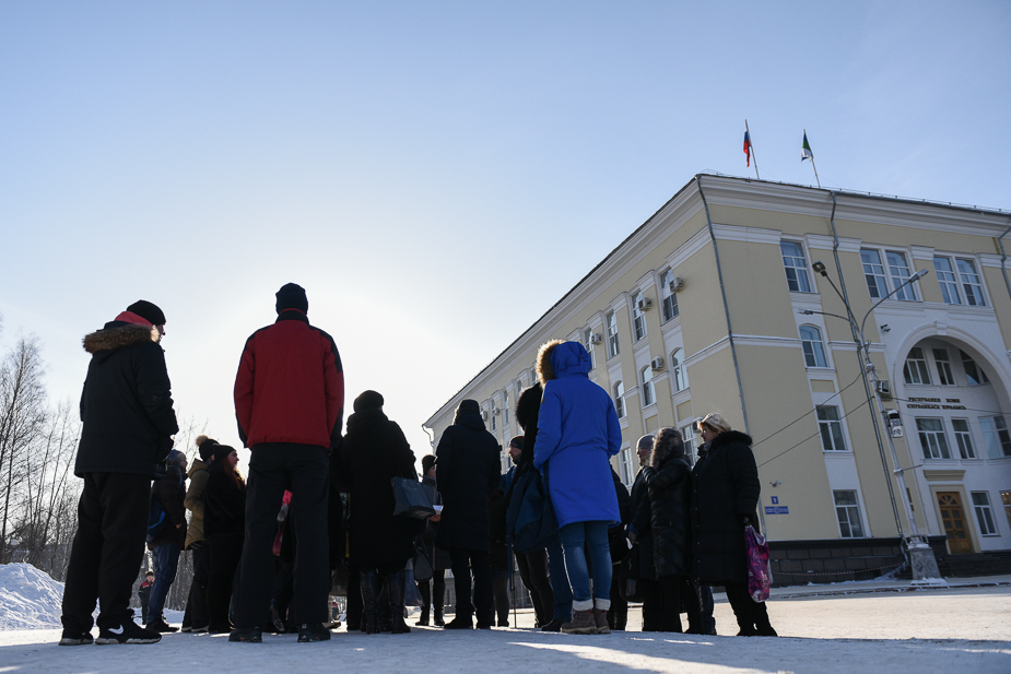 Работники Сыктывкарской станции скорой медицинской помощи утром 15 февраля собрались на Стефановской площади Сыктывкара, чтобы заявить о нарушении своих трудовых прав и записаться на прием к главе Коми Сергею Гапликову по поводу нарушения «Майских указов» президента России. Они утверждают, что многие из них не получили зарплаты за январь, а некоторые работники оказались даже должны — так они узнали, что премия, выданная в конце года, на самом деле была авансом выплат за следующие месяцы.